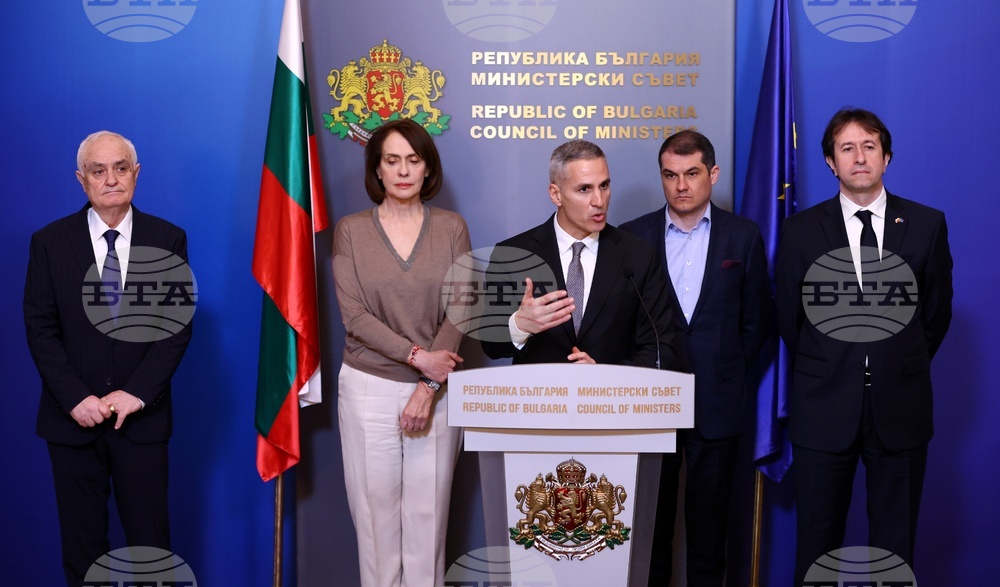 министър-председател Андрей Гюров по време на брифинг в Министерски съвет.