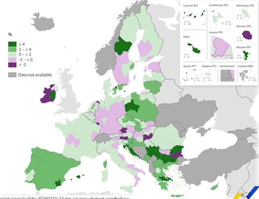 За съжаление, в проучването на Евростат, българският представител е виден и на дъното на класацията. Малко изненадващо, нашият Югоизточен район се нарежда на последно място в ЕС с 12.7% икономически спад през 2024 г. Икономиката в Северозападен регион също е изпитала спад, но значително по-малък – с 2%. Сред низходящите са също регионите Северен и Западен в Ирландия с 5.5% свиване на БВП, и австрийският Кернтен с 3.6% спад.