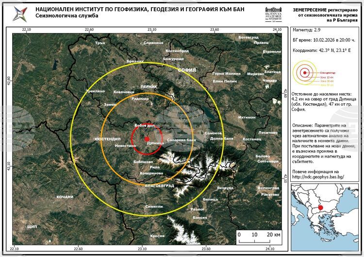 Начало България Земетресение с магнитуд 2,9 е регистрирано в района на Дупница