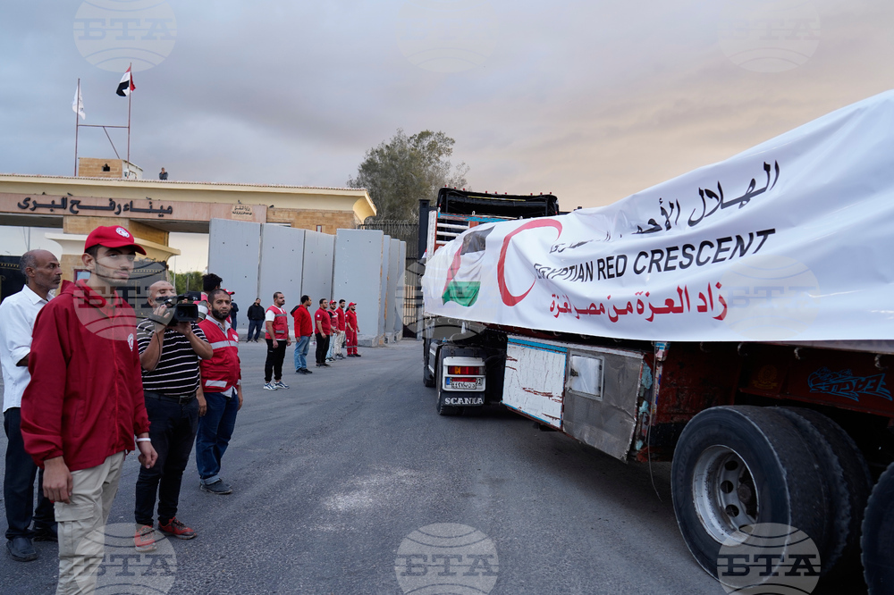 Камион с хуманитарна помощ от египетската страна на гранично-пропускателният пункт „Рафах“, 12 октомври 2025 г. Снимка: АП/БТА
