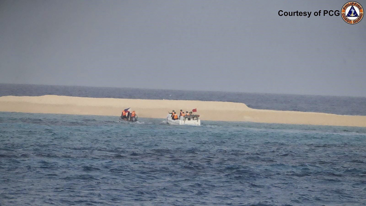 Според филипински представители, четирима служители на китайската брегова охрана са поставили китайското знаме на острова и след това са се оттеглили.