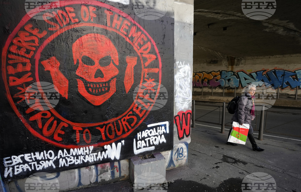 Логото на руската група „Вагнер“ в Белград. Снимка: АП/БТА