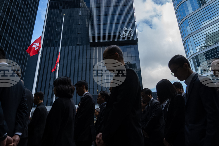 Лидерът на Хонконг, Джон Ли, спази триминутно мълчание пред правителствената сграда, където знамената са на полу-палуба.