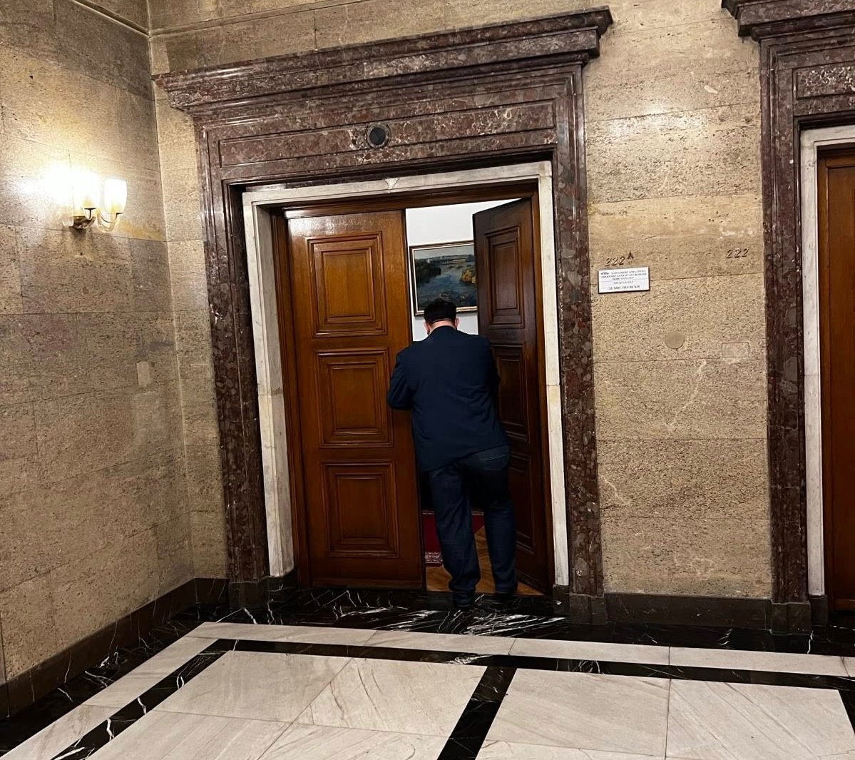 А под чий натиск самият той направи тези изказвания — непосредствено след излизането от определена стая с номер 222А?